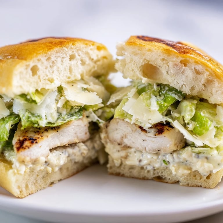 I made these sandwiches for a friend who swore she didn't like Caesar anything after a bad salad experience in college. She took one bite, paused, then asked if I'd made the dressing from scratch. I hadn't, but the toasted bun and the way the Parmesan melted slightly into the warm chicken made everything taste elevated. She ended up taking two sandwiches home wrapped in foil, and I knew I'd converted her.