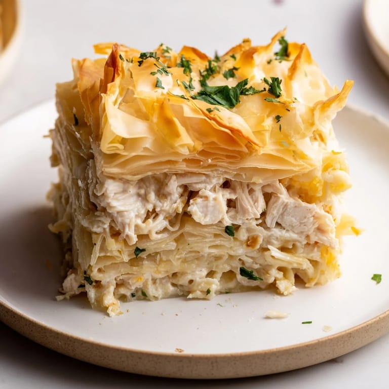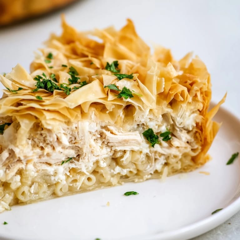 Save to Pinterest My sister texted me a video of someone making a sweet phyllo crinkle cake, and I immediately thought, why not savory? That weekend I had leftover chicken in the fridge and half a box of ditalini, so I started scrunching phyllo sheets over a pan of cheesy pasta filling. The kitchen smelled like butter and garlic, and when I pulled it out of the oven, golden and crackling, I knew I had stumbled onto something special. My husband walked in, saw the pan, and asked if I had made lasagna. Close, I said, but crinklier.