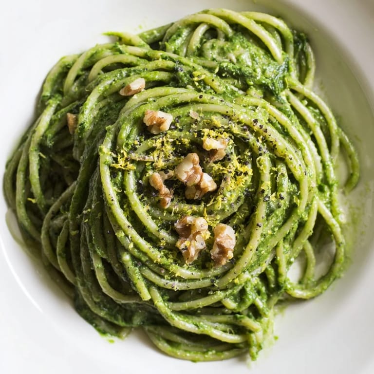 Save to Pinterest The first time I made this vibrant green sauce, my kitchen partner looked at the blender with genuine suspicion. That looks like pond water, they said, leaning against the counter with raised eyebrows. But when I tossed it with hot pasta and the aroma of toasted walnuts filled the room, they were already reaching for a bowl before I could even finish plating.