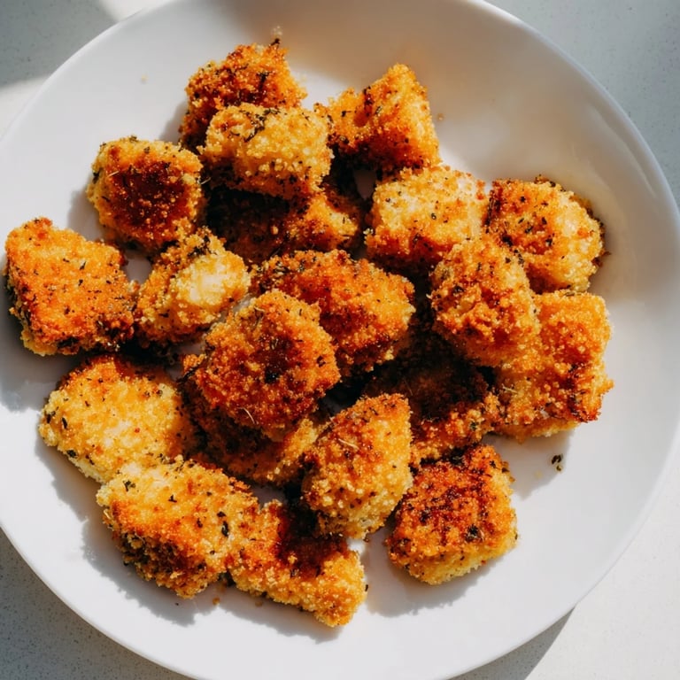 - Slice your chicken into even bite-sized pieces, then set up three shallow bowls in an assembly line. First bowl gets the flour, second the beaten eggs, third the panko mixed with Parmesan, oregano, garlic powder, salt, and pepper. This organization makes the whole process feel seamless.