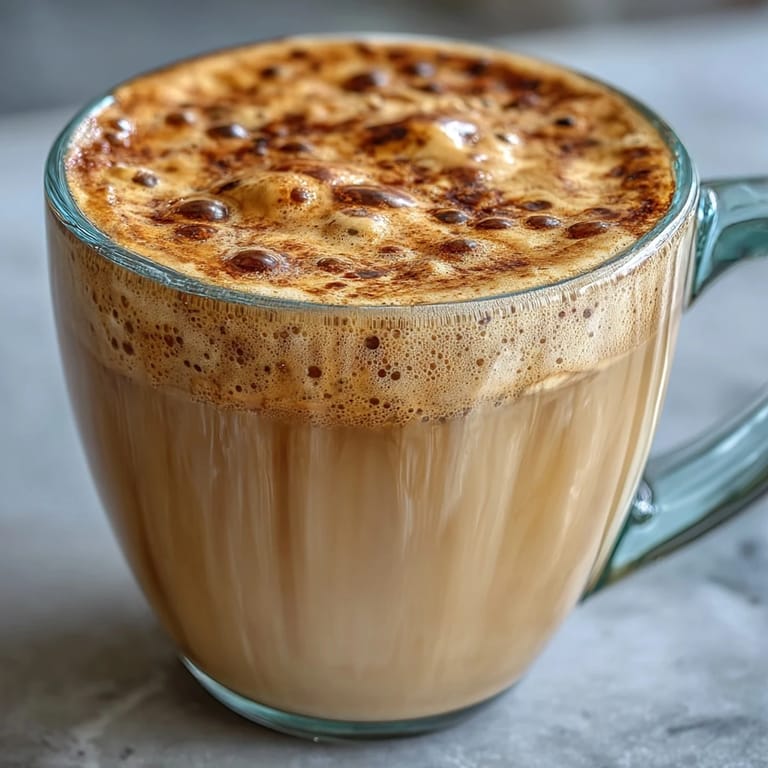 Serve this latte immediately in pre-warmed mugs. It is best enjoyed alongside a light snack or as a standalone treat for a moment of quiet relaxation.