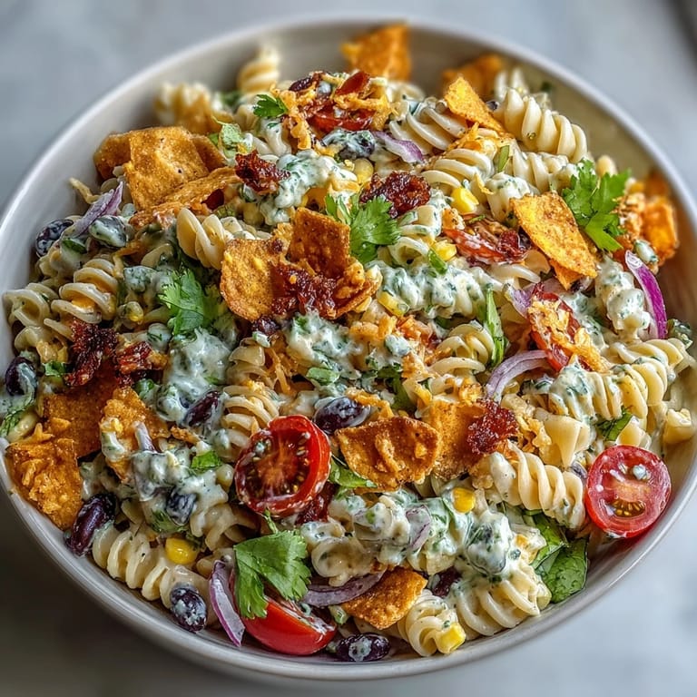 Save to Pinterest Last summer, my neighbor showed up at a potluck with this taco pasta salad, and I watched it disappear faster than the ice cream. She caught me sneaking a third helping and laughed, sliding me the recipe scribbled on the back of an envelope. What struck me wasn't just how good it tasted—it was how effortlessly it came together, like the salad itself had been waiting to happen in her kitchen. Now it's become my go-to when I need something that tastes like summer and feels like no work at all.