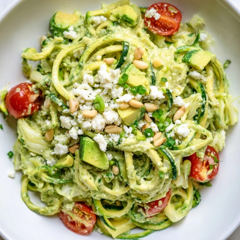 Save to Pinterest I stumbled on this recipe during a week when my fridge was overflowing with zucchini from a neighbor's garden. I'd been scrolling through videos of creamy pasta dishes and thought, why not make something just as indulgent but without the guilt? The first batch turned out so vibrant and fresh that I ended up eating it straight from the bowl, standing at the counter. Now it's my go-to whenever I want something that feels light but doesn't leave me hungry an hour later.