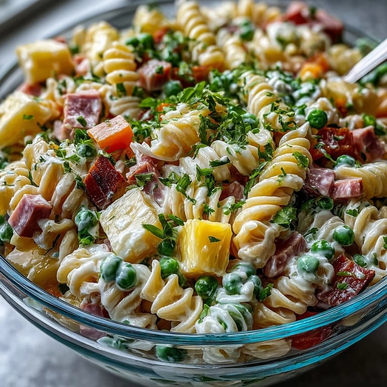 Save to Pinterest My sister called me at work asking for a potluck contribution, and I had maybe thirty minutes to figure something out. I remembered my mom making a pasta salad years ago with ham and pineapple—something tropical that felt like a shortcut to summer—so I raided the pantry and threw together what I had. The result was so unexpectedly bright and satisfying that it's been my go-to ever since, especially when I need something that tastes effortless but feels like I actually tried.