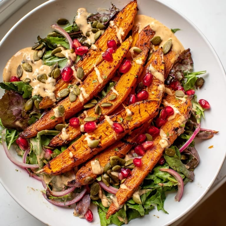 This salad is forgiving in the best way. If you don't have pomegranate seeds, use fresh orange segments for that burst of brightness, or leave it out entirely and let the roasted carrots be enough. For a warmer-weather version, let the carrots cool completely before serving—the dressing feels lighter that way. Sweet potatoes or parsnips roast beautifully using the same spice blend if you want to switch things up.