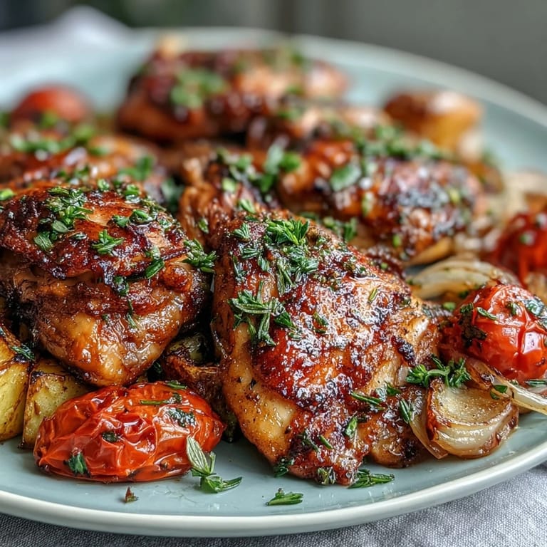 Serve this straight from the pan if you're eating casually, or transfer it to a large platter if you want it to feel more intentional and restaurant-like. A crusty piece of bread is perfect for soaking up the pan juices, or you can serve it over quinoa or even couscous for a more complete meal. Wine-wise, a crisp Sauvignon Blanc cuts through the richness beautifully, or go lighter with a chilled Pinot Noir if you prefer red.