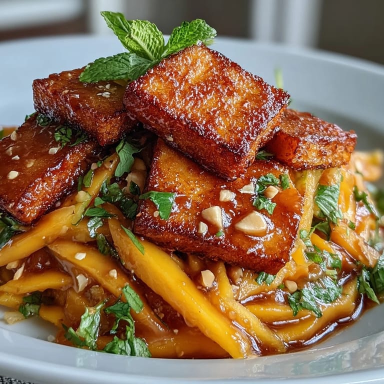 Save to Pinterest The sound of tofu sizzling in the skillet always transports me to bustling Bangkok markets filled with intoxicating aromas and bright colors. The first time I tried this mango salad, I was surprised by the way sweet, tart, and spicy flavors meshed so effortlessly. It was a lunch experiment on a hot Saturday, and the satisfaction of biting into crispy tofu with cool mango was almost enough to make me forget the heat outside. The fridge was nearly bare, but somehow the combination of herbs and ripe fruit pulled everything together. That meal proved you really can create magic with just a handful of vibrant ingredients.