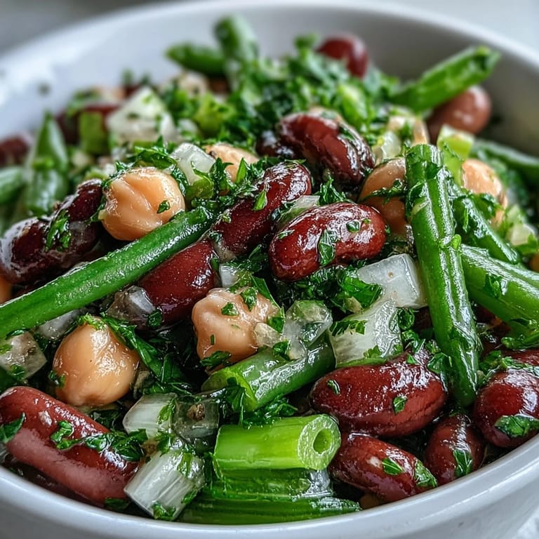 Save to Pinterest This vibrant Three-Bean Salad is a classic American staple that brings together a medley of textures and bright, refreshing flavors. Combining green beans, kidney beans, and chickpeas, this salad is tossed in a zesty vinaigrette that makes it a perfect companion for summer picnics and family potlucks. Not only is it a visually stunning dish, but it is also a wholesome, healthy side option that caters to various dietary needs.